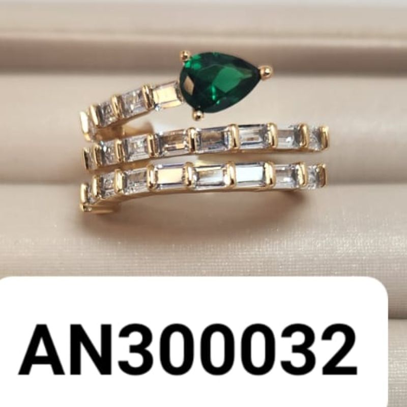 - Anel Cobra de zircônias cúbica transparente e cabeça verde